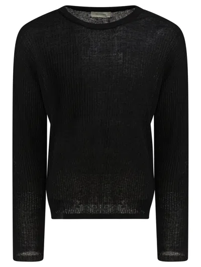 Knitted Crew Neck White Organic Cotton Sweater In Multi