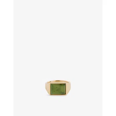 Mens Green Lennox 14ct Yellow-gold Plated 925 Sterling Silver And Jasper Ring