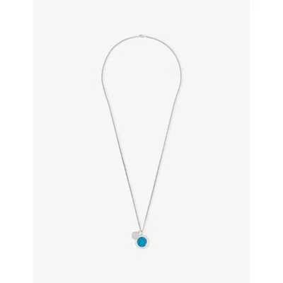 Mens Single Blue Eye Rhodium-plated 925 Sterling Silver Necklace In Metallic