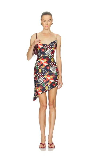Vivi Brand-print Woven Mini Dress In Missed Connection