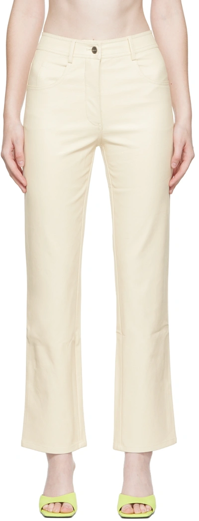 Off-white Junior Faux-leather Pants In Creme Vegan Leather