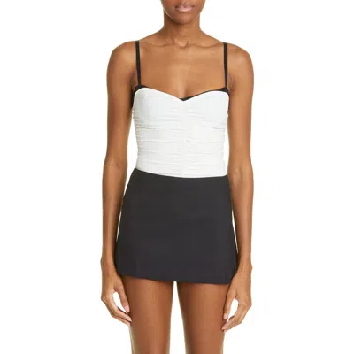Renzo Ruched Mesh Tube Top In White