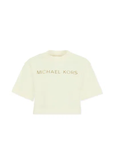 Kids' Ivory Crop T-shirt For Girl With Logo In Neutral