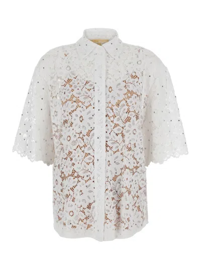 White Shirt With Classic Collar And Lace Design In Cotton Blend Woman In Multi