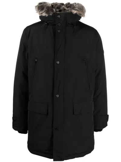 人造皮草边饰派克大衣