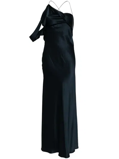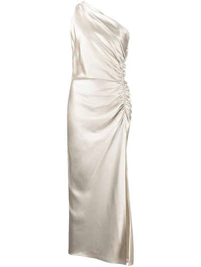 Gathered-detail One-shoulder Silk Gown In Schwarz