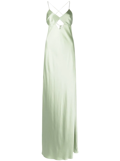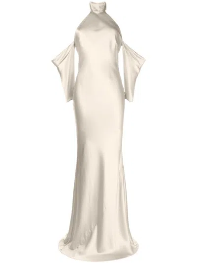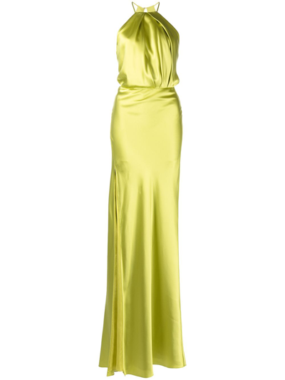 Halterneck Drop-sleeve Maxi Dress In 蓝色