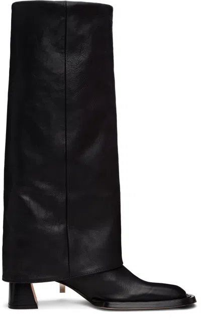 Black Bellamy Fold Over Tall Boots In Black Rubber