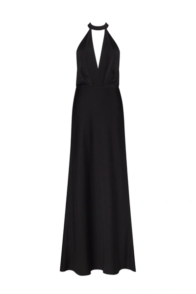 Classical Black Halterneck Satin Maxi Dress, Xo Xo