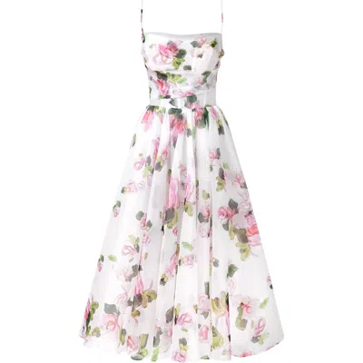 Tender Floral Midi Tie-strap Dress In White