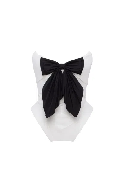 Black Lace Over The White Mesh Peplum Corset With An Oversized Bow, Parisienne
