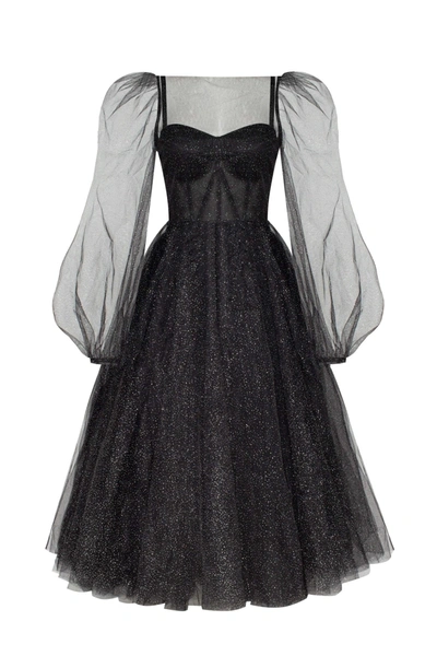 Combination Sparkly Tulle Dress In Black