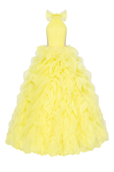 Turtleneck Festive Yellow Evening Gown