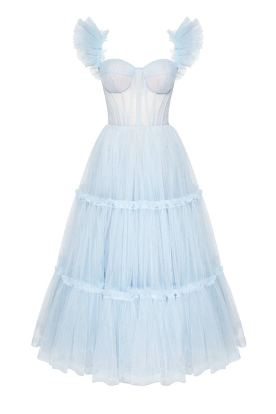 Light Blue Ruffled Tulle Midi Dress
