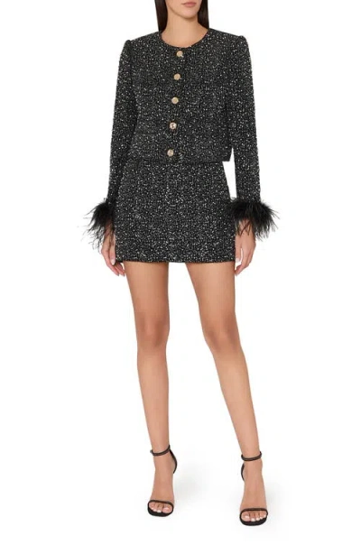 Aya Beaded Feather Cuff Jacket In Black
