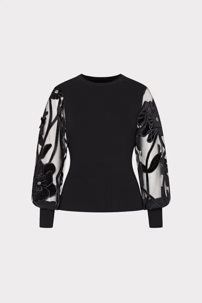 Rosita Velvet Lace Sleeve Crewneck Top In Black