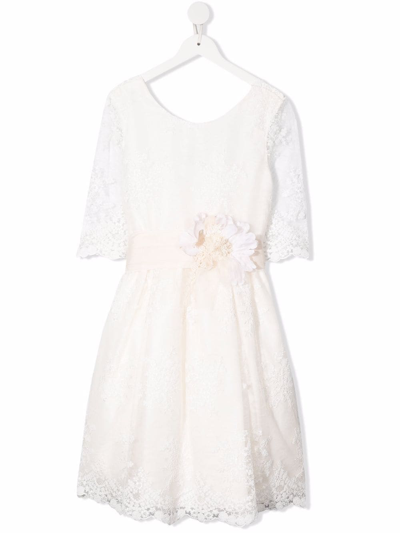 花卉贴花蕾丝细节连衣裙