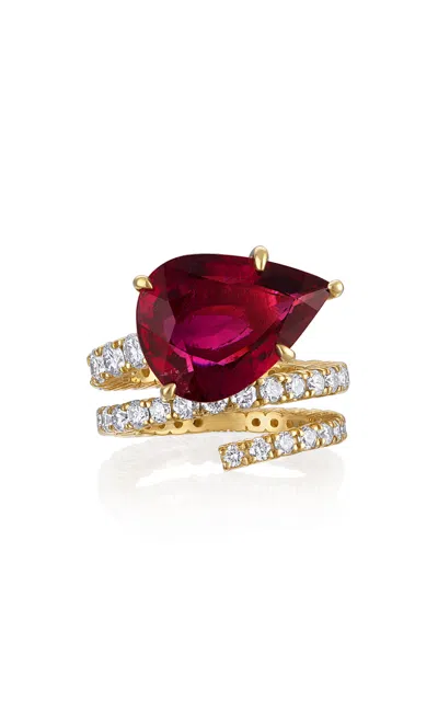 18k Yellow Gold Rubellite And Diamond Ring
