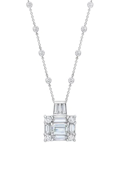 Platinum Diamond Emerald Necklace In Metallic