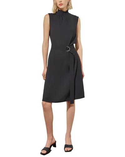 Ruffle Mock Neck Crepe De Chine A-line Dress In Black