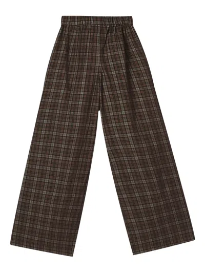 松紧裤腰格纹长裤