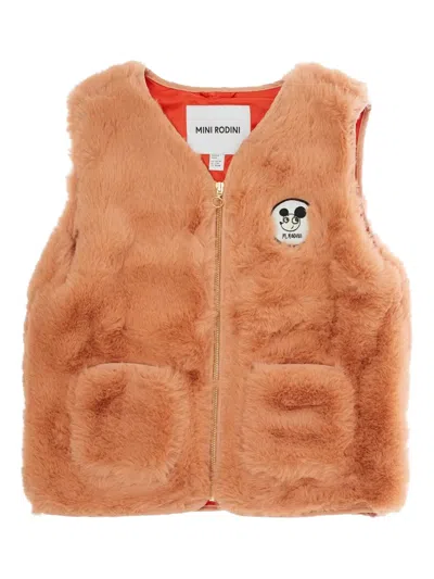 Boys Brown Kids Round-neck Regular-fit Faux-shearling Gilet 3-9 Years