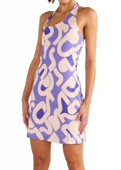 Iris Asymmetric Mini Dress In Blue Geo In White