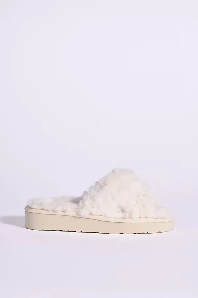 Teddy Crossband Slide Slippers In White