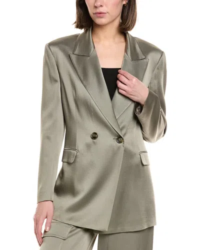 Double-breasted Satin Jacket In Green
