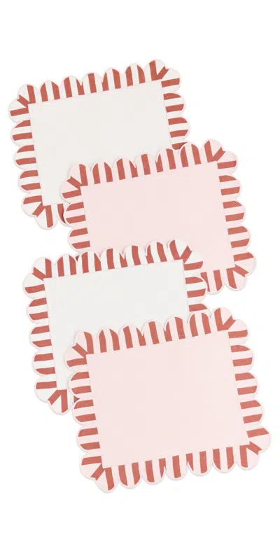 Scalloped Stripe Double Sided Placemats Set Of 4 Red