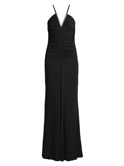 Cascada Halter Hardware Draped Maxi Dress In Black