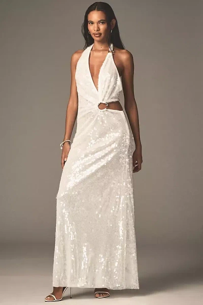 Devon Asymmetric Plunge Cutout Sequin Maxi Dress In White