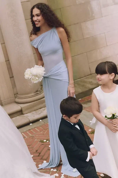 Sisal One-shoulder Twist Mesh Maxi Dress In Blue