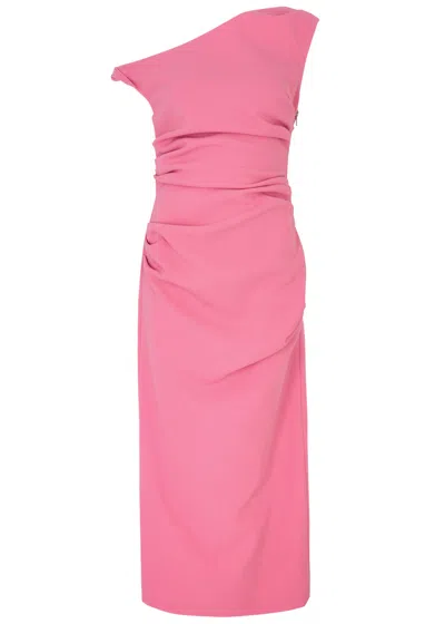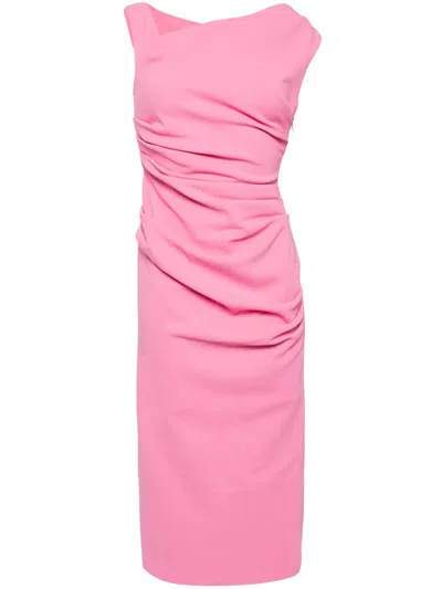 Alaska Gathered Midi Dress In Pink