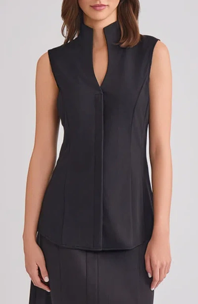 Pima Cotton Sleeveless Stand Collar Shirt In Black