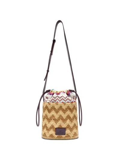 Zigzag-woven Bucket Bag In Neutral