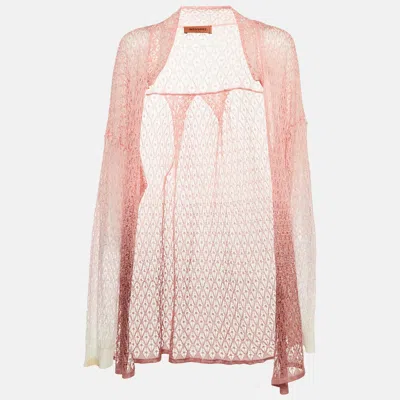 Pre-owned Pink Crochet Knit Sheer Cardigan M