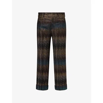 Womens Dark Blue Chevron Cropped Metallic-knit Woven Trousers In Brown