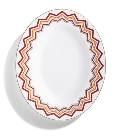 Porcelain Zigzag Oval Serving Dish In Multi