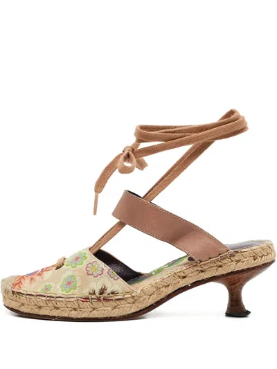 花卉印花低跟草编鞋(5厘米,典藏款)