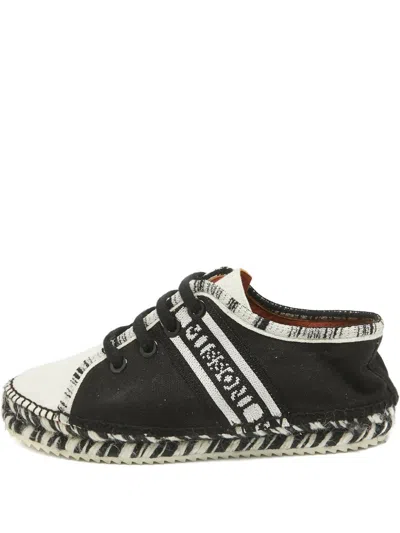 Pre-owned Black/white Canvas Espadrille Flats Size 36