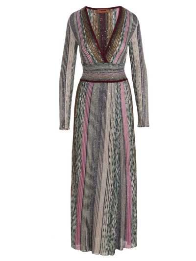 Langes Outfit Aus Viskose Und Netzmaterial In Multi