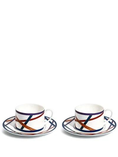 Set Of 2 Bone China Nastri Bordeaux Teacups And Saucers In Red