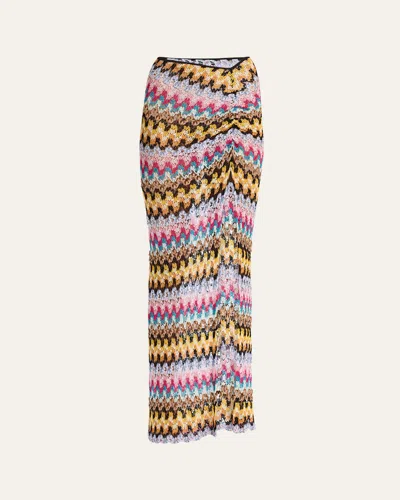 Striped Metallic Crocheted Lace Maxi Skirt In Multi