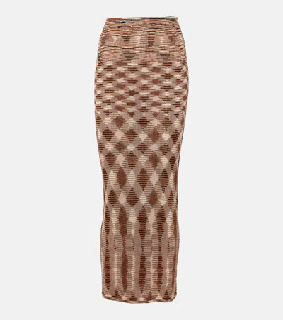 Striped Embellished Metallic-knit Maxi Skirt In Multicoloured