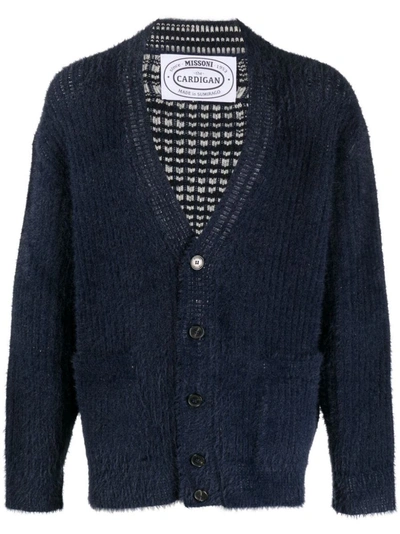 Chevron Pattern Handcrafted V-neck Cardigan In Blue