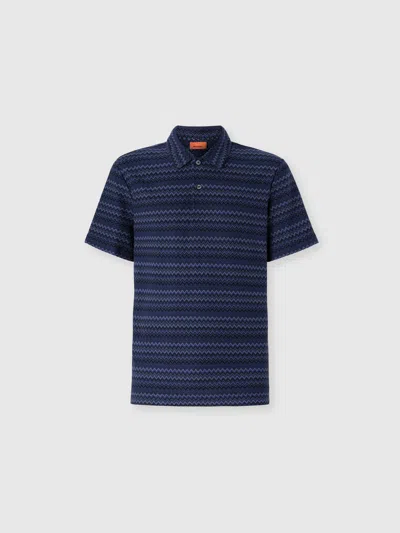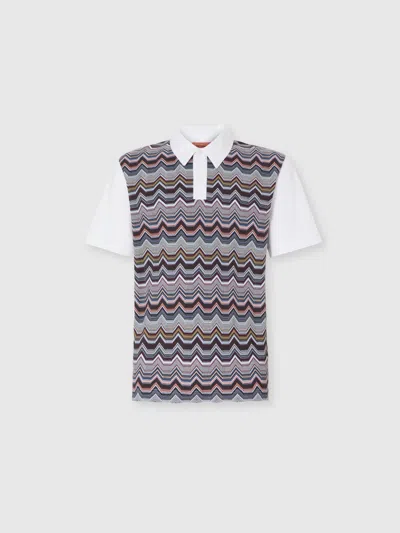 Short Sleeve Cotton Polo With Zigzag Pattern In Gray