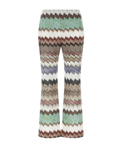 Flared Zigzag Pattern Trousers With Soft Texture In Multicolor
