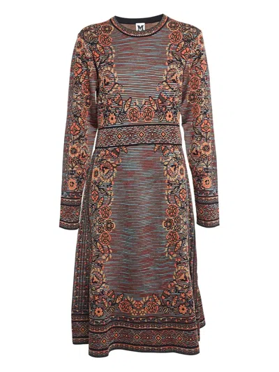 Pre-owned M Multicolor Perforated Knit Fit & Flare Midi Dress M