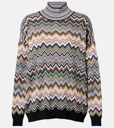 Oversized High-neck Sweater With Chevron Pattern In Multi
